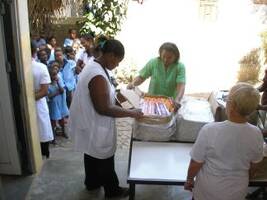 Grundschule Nhagar (Mai 2010): Auspacken einer Sendung von Schulmaterial aus Furpach