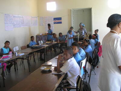Nachdem die Grundschule von Nhagar dank der Spenden u.a. des EKF und der Partnerschule Furpach einen relativ hohen Entwicklungsstand erreicht hatte, galt es, weitere bedürftige Grundschulen, die sich für Spendenaktionen eignen würden, ausfindig zu machen. Durch Hinweise eines früheren Botschafters der Republik Cabo Verde in Deutschland, eines Rechtsanwalts in São Filipe und einer kompetenten Direktorin im Bildungsministerium in Praia fiel unsere Wahl auf die unweit von São Filipe im ländlichen Raum gelegene Schule von São Domingos auf der Insel Fogo. Es gelang, den EKF von der Notwendigkeit zu überzeugen, diese Schule in die Liste der hilfsbedürftigen Einrichtungen aufzunehmen. Die Schule hat 139 Schüler in 6 Klassen und 8 Lehrer.